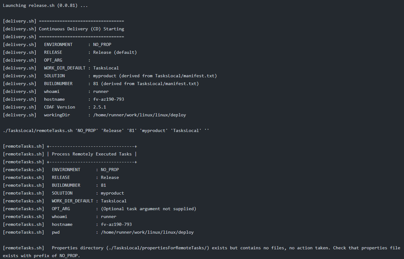 To embed automation into the feature development lifecycle, a pipeline should exist at the earliest possible time, configured to initially “do nothing” at deploy time. Using the CDAF samples for Linux or Windows, an operational pipeline can be created quickly.