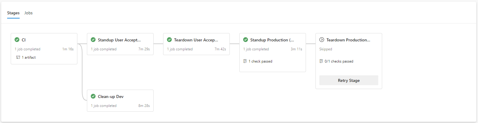 In this example, the solution delivery is executed from a, GitLab Pipeline with approval gates.